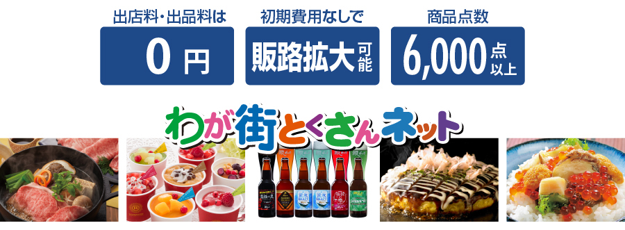 日本全国の特産品・名産品やギフト商材を取り扱うECサイト『わが街とくさんネット』では、地域事業者の販路拡大を支援することで雇用創出・移住者増加につながり、地域を活性化する目的があります。そのため、出店料は0円で出品していただいており、販売実績に応じた費用のみで運営しております。