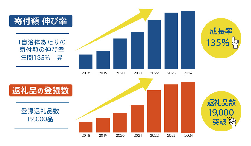 また、当社はこれまでに地域が有する様々な地域資源を返礼品として開発・登録、提供いただける地域事業者の方々とお取引し、累計で2,500社を超える地域事業者と協働して年間で10万件以上、寄附者へ返礼品を提供しております。