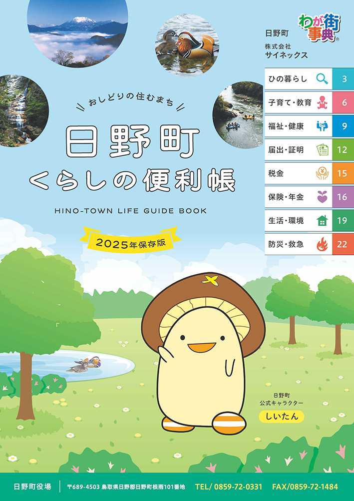 この冊子は、“おしどりの住むまち”日野町の制度や役場での各種手続きなどの行政情報のほか、防災、子育てなど暮らしに役立つ情報を一冊にまとめた地域行政情報誌として発行いたします。