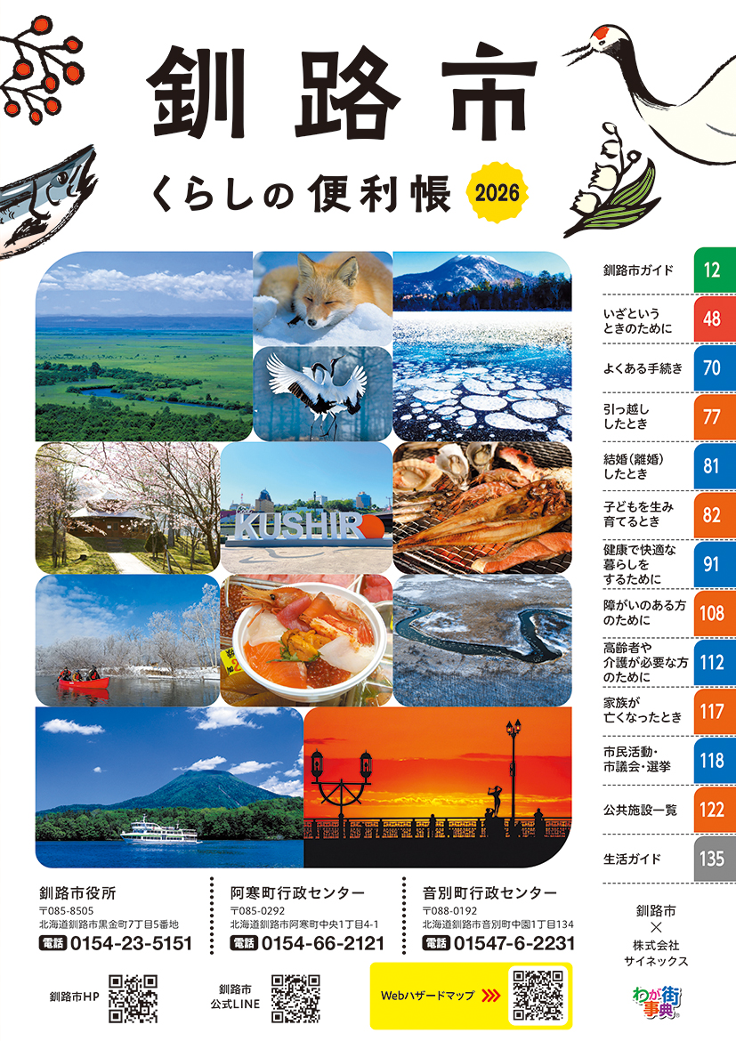 北海道釧路市(鶴間 秀典 市長)と株式会社サイネックスは、官民協働事業として『釧路市くらしの便利帳』を共同発行いたしました。