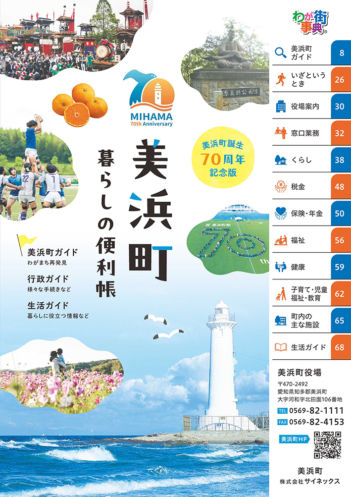 愛知県美浜町(八谷 允則 町長)と株式会社サイネックスは、官民協働事業として『美浜町暮らしの便利帳』を共同発行いたしました。