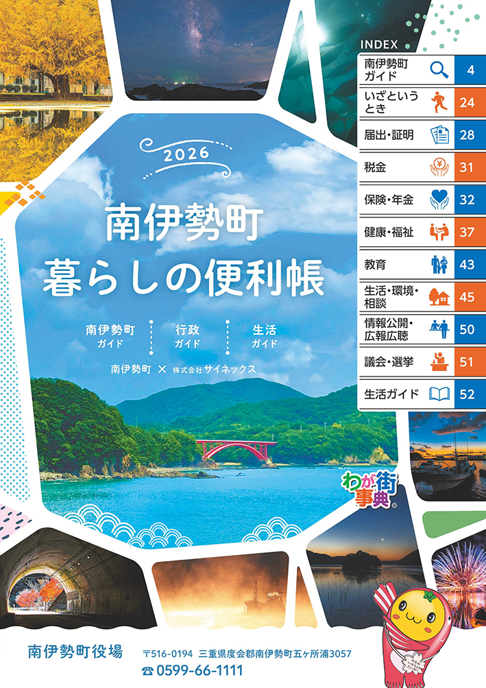 三重県南伊勢町(上村 久仁 町長)と株式会社サイネックスは、官民協働事業として『南伊勢町 暮らしの便利帳』を共同発行いたしました。