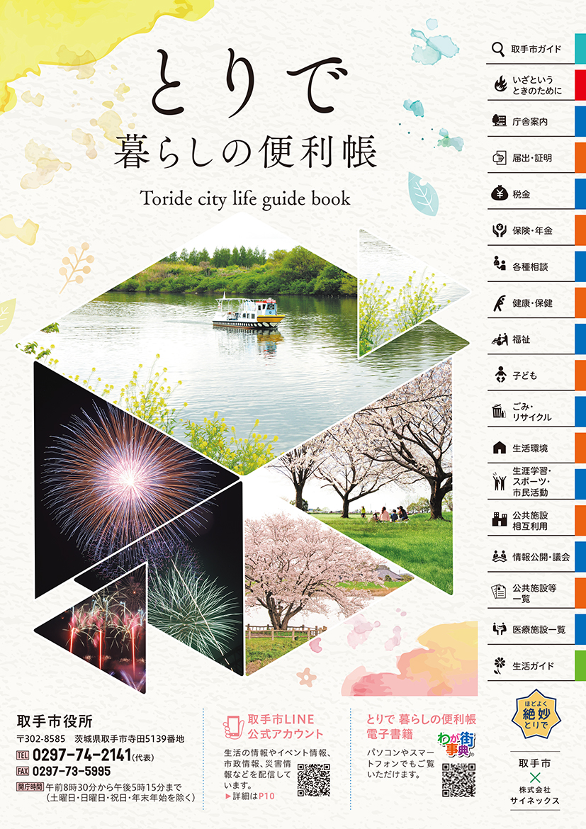 茨城県取手市(中村 修 市長)と株式会社サイネックスは、官民協働事業として『取手市 暮らしの便利帳』を共同発行いたしました。