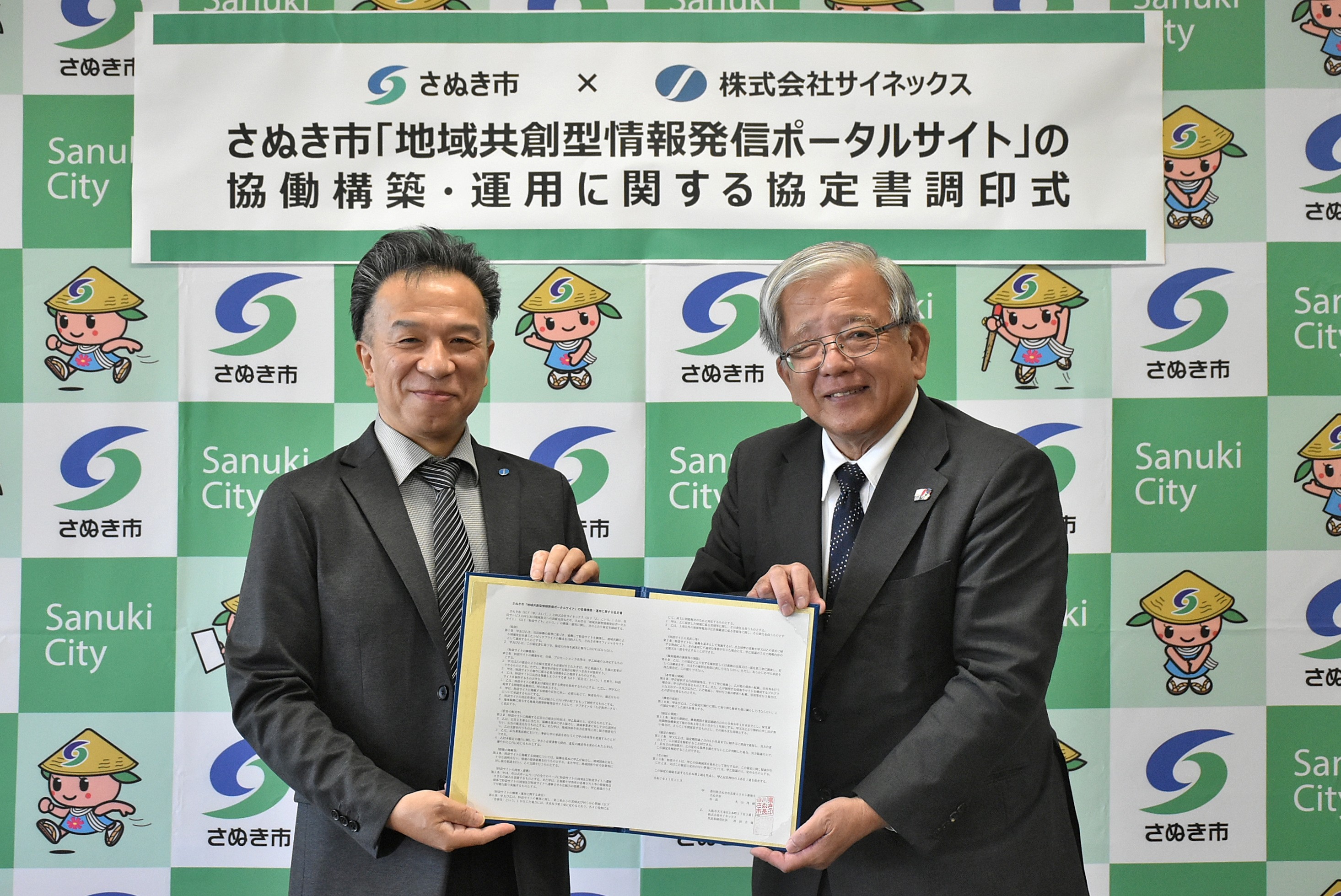 株式会社サイネックスは、香川県さぬき市(大山 茂樹 市長)と「わが街ポータル さぬき(仮称)」の協働構築・運用に関する協定を締結いたしました。リアルな地域情報をさぬき市近隣および全国に発信すべく、官民が一体となって、さぬき市全体で作り上げるシティプロモーション特設サイトを支援いたします。