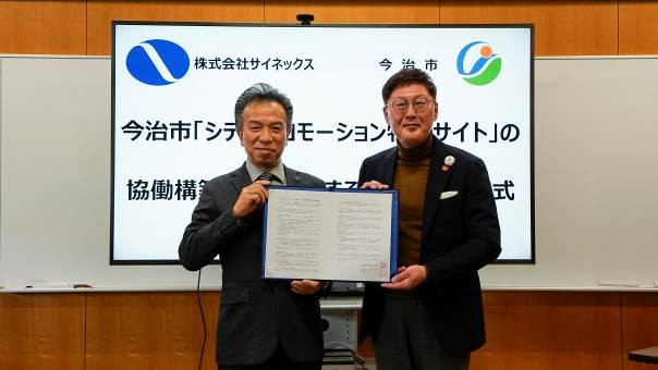 株式会社サイネックスは、愛媛県今治市(徳永 繁樹 市長)と「わが街ポータル いまばり(仮称)」の協働構築・運用に関する協定を締結いたしました。リアルな地域情報を今治市近隣および全国に発信すべく、官民が一体となって、今治市全体で作り上げるシティプロモーション特設サイトを支援いたします。