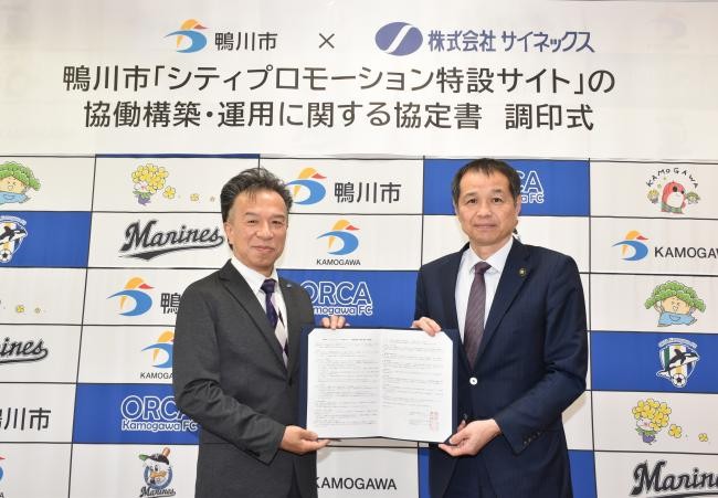 株式会社サイネックスは、千葉県鴨川市(佐々木 久之 市長)と「わが街ポータル かもがわ(仮称)」の協働構築・運用に関する協定を締結いたしました。リアルな地域情報を鴨川市近隣および全国に発信すべく、官民が一体となって、鴨川市全体で作り上げるシティプロモーション特設サイトを支援いたします。